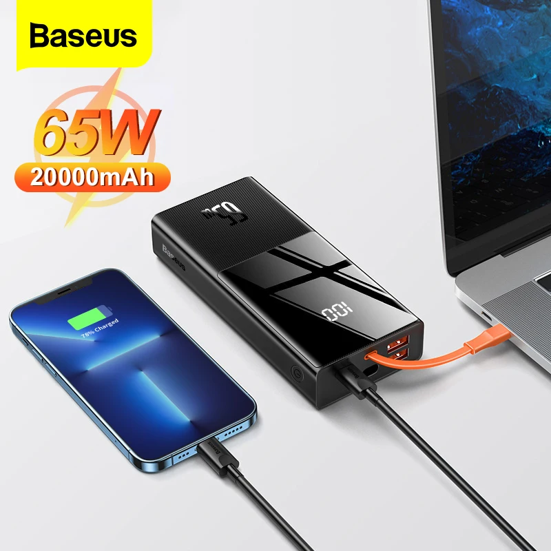 Baseus 65w Power Bank 20000mah Portable Pd Fast Charger Powerbank Phone External Battery For Macbook Air Notebook Iphone Xiaomi Power Bank Aliexpress